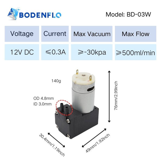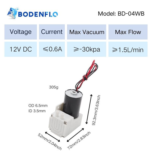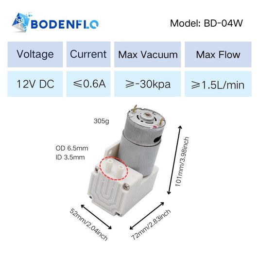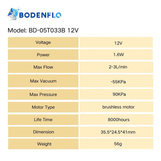12V Diaphragm Air Pump Brushless Compressor BD-05T033B 3L -55KPA BODENFLO