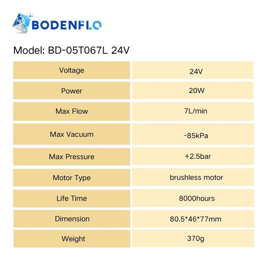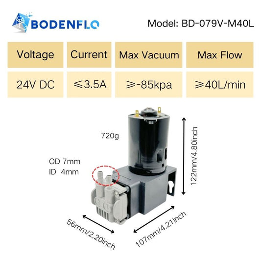 24V Air Suction Pump High Suction for Robotic Arms BD-079V-M -85KPA 40L BODENFLO