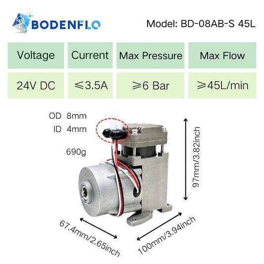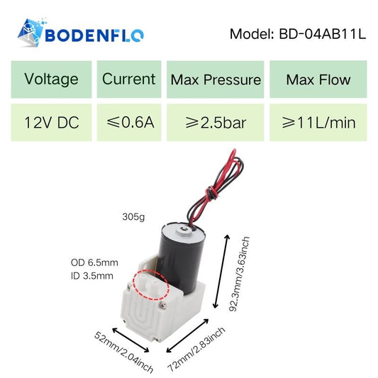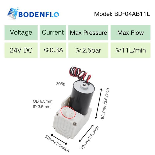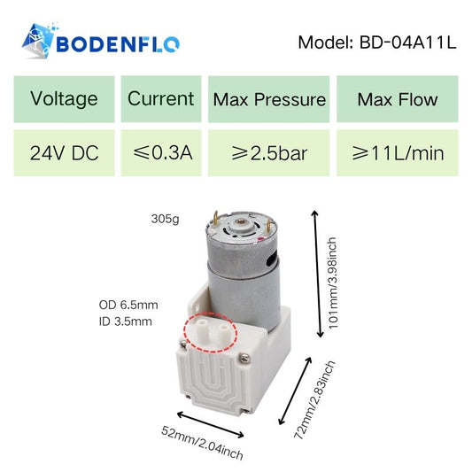 24V Small Diaphragm Air Pump 3Bar 20L for Air Purifiers Use BD-04A BODENFLO