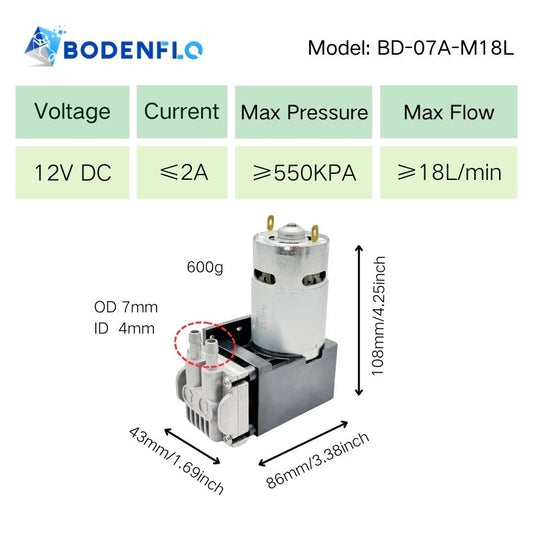 12V Micro Air Pump High Flow for Electric Power Tools Low Noise Mini Pumps BD-03A 3L 6L BODENFLO