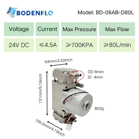 24V 80L Micro Compressor Pump with High Pressure 7bar for Medical BD-08AB-D BODENFLO